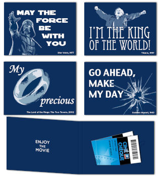 Pour embellir votre cadeau, présentez les Ciné Chèques dans ces pochettes incontournables parées des plus belles phrases cultes du cinéma !